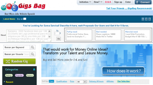 Gigsbag, es una de las mejores plataformas de micro trabajos en Español que tanto éxito tienen en el mundo. Nacida para revolucionar los trabajos online, es un lugar donde se une gente dispuesta a ofrecer micro trabajos desde 5 euros y personas que los necesitan. Si tienes algo que ofrecer gigsbag te facilita un espacio donde darte a conocer de forma fácil, ágil y gratuita. No necesitas experiencia, sólo talento. Y si estás buscando algo, imagina todas las cosas que puedes encontrar desde 5 euros.
